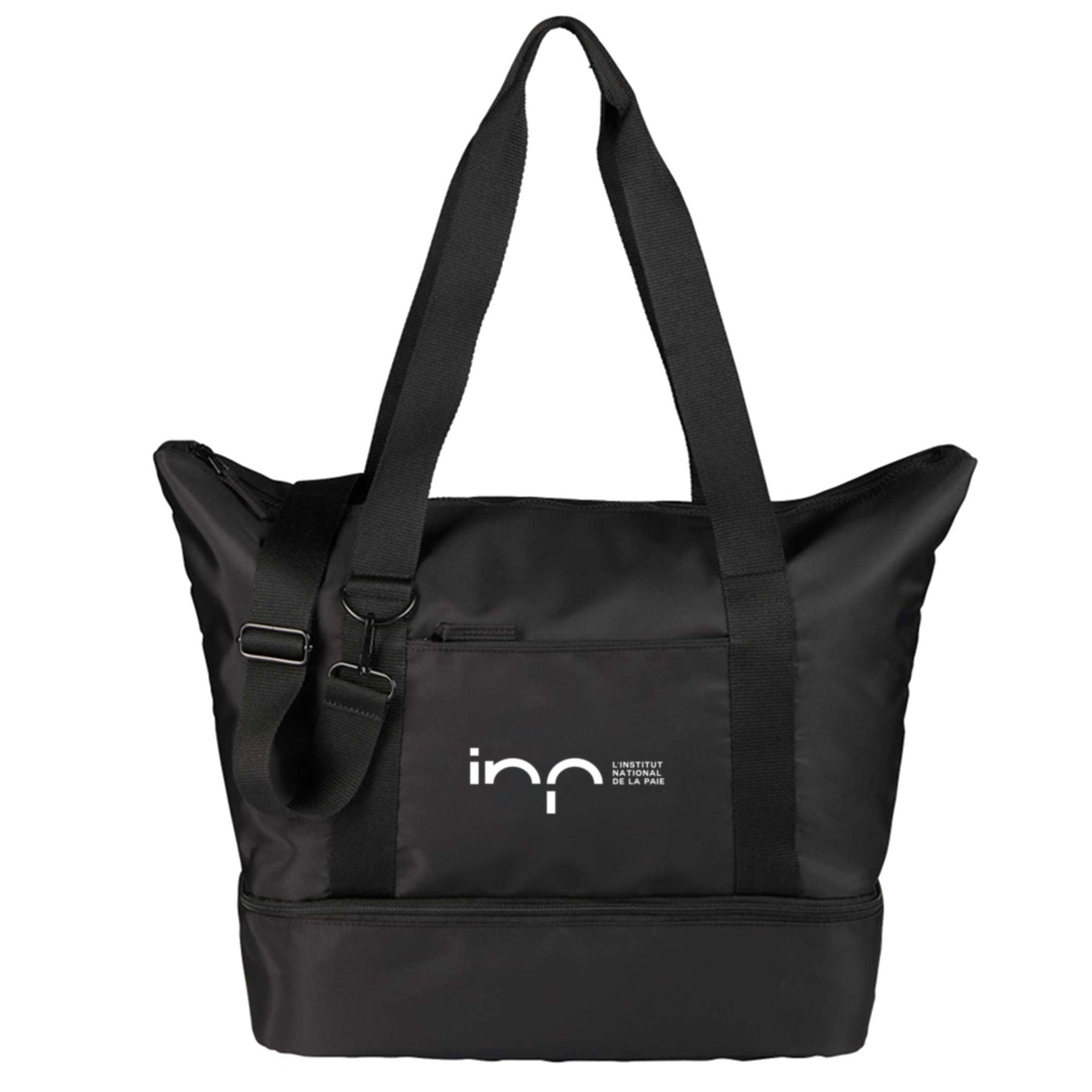 The Daybreak Recycled Travel Tote is the perfect companion for wherever the day takes you. Thoughtfully designed with spacious storage and smart organization, it features a drop-bottom compartment to separate shoes, gym gear, or other essentials, plus a large zippered main section and an interior laptop pocket that fits up to a 15" laptop.